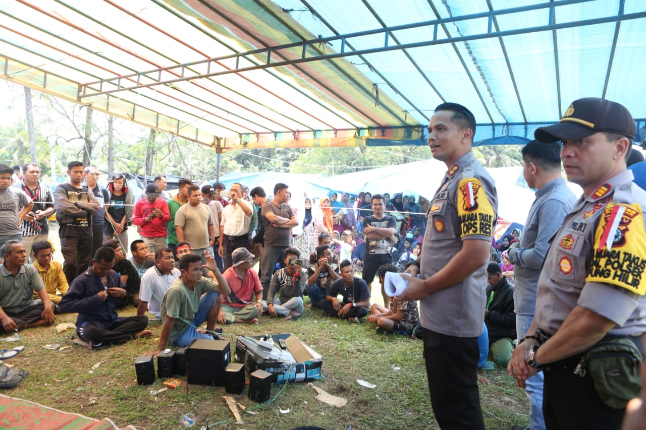 Setiba dilokasi rombongan Kapolres Kampar didampingi Kapolsek Tapung Hilir AKP Amru Hutauruk SH mendatangi masyarakat Desa Koto Aman yang tengah menggelar aksinya pada tenda-tenda yang mereka buat selama melakukan unras ini.