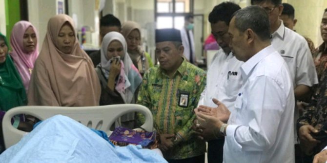 Gubernur Riau H. Syamsuar langsung melihat jenazah almarhum Kabag Kesra Kuansing Sawir SH di RSUD Arifin Achmad.