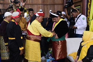 Prosesi penabalan gelar adat dilakukan di Rumah Adat Sakai Desa Kesumbo Ampai, Kecamatan Bathin Solapan, Rabu (1/5/2019).