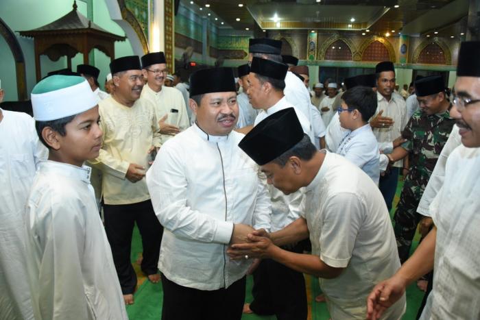 Bupati Bengkalis Amril Mukminin melaksanakan sholat sunat taraweh perdana, secara