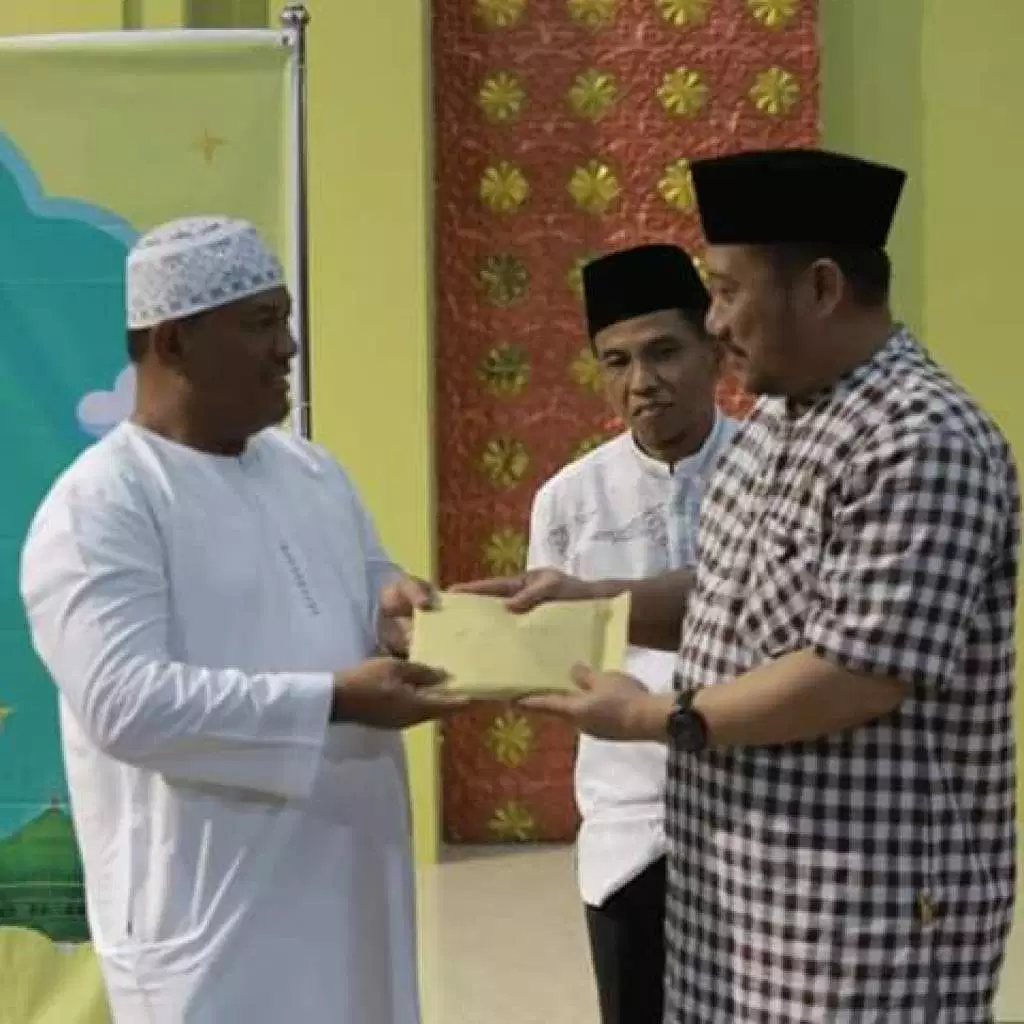 Usai melepas Tim Safari Ramadhan Tahun 1440 H/2019 M, Bupati Kampar, Catur Sugeng Susanto, S H, menyerahkan Bantuan untuk penyelenggaraan Ibadah Mesjid Al – Ikhsan Markaz Islamic Center Bangkinang,