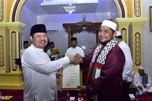 Dalam suasana Safari Ramadahan 1440 H, Bupati Bengkalis, Amril Mukminin mengucapkan terimaksih dan  memberikan  apresiasi yang setinggi-tingginya kepada Baznas, K3S dan Bank Riau Kepri, Jum’at (10/5/2019).
