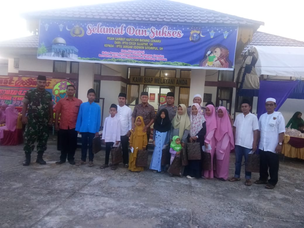 Diakhir acara, Kapolsek Batang Cenaku, Iptu Cecep Sujafar, SH memberikan beberapa santunan kepada anak yatim sebanyak 10 anak. Kemudian bersama seluruh personilnya, Kapolsek dan seluruh tamu yang hadir bersantap menu buka puasa bersama @Liputan: Arbain Hsb