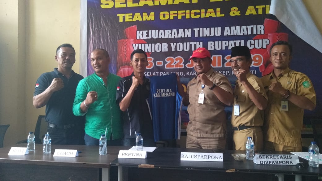 Kepala Dinas Pariwisata kabupaten Kepulauan Meranti Riski Hidayat Stp, MSi sangat mengapresiasi kepada Persatuan Tinju Indoesia (Pertina) Kabupaten Kepulauan Meranti sebagai tuan rumah dalam pelaksanaan Tinju Amatir Yunior Youth 2019