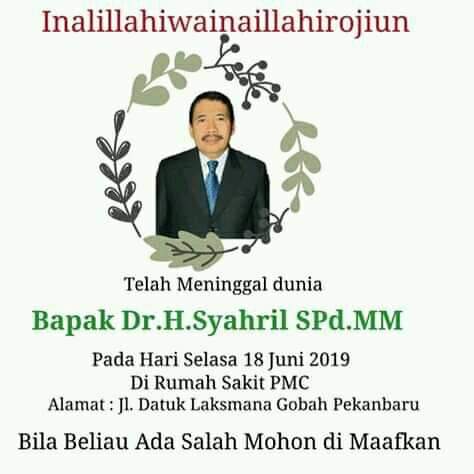 Ucapan duka pun mengalir dari berbagai tokoh masyarakat di Riau yang terpantau melalui media sosial dan group pertemanan WA. (Tp/Tis)