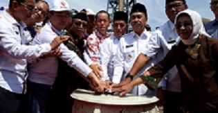 Gubernur Riau H.Syamsuar, melakukan pemancangan pertama pembangunan Masjid Cheng Ho di Bagansiapiapi, Kabupaten Rokan Hilir (Rohil), Rabu (19/06/2019).