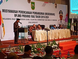 Musrenbang Rancangan RPJMD Provinsi Riau Tahun 2019-2024, merupakan salah satu tahapan dalam penyusunan perencanaan pembangunan melalui pendekatan partisipatif dengan melibatkan masyarakat dan pemangku kepentingan untuk mendapatkan masukan terhadap tujuan, sasaran, strategi, arah kebijakan dan program pembangunan daerah yang telah dirumuskan dalam Rancangan RPJMD.