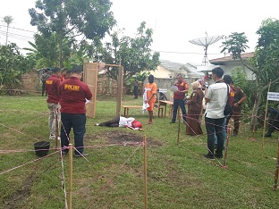 Polres Meranti Lakukan Rekontruksi atas Pembunuhan Erna dihalaman Kantor Polres Rabu, (3/7/2019) Pagi.