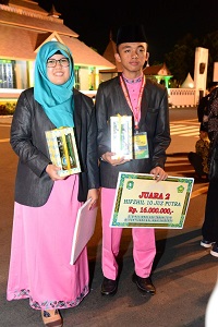 Bayu yang berasal dari Kabupaten Rokan Hulu (Rohul) meraih Juara 2 Tahfidz 10 Juz Putera, sedangkan Indah yang berasal dari Kabupaten Siak juga meraih Juara 2 Tahfidz 10 Juz Puteri.