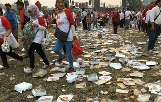 Acara Syukuran Nasional Jokowi Berserakan Sampah Bekas Kotak Makanan