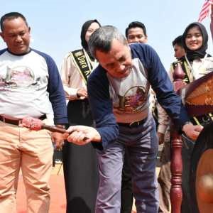 Gubernur Riau, Syamsuar didampingi plh Bupati Kampar, Drs. Yusri, M.Si, melakukan pemukulan gong pertanda dimulainya KIDB Festival 2919.