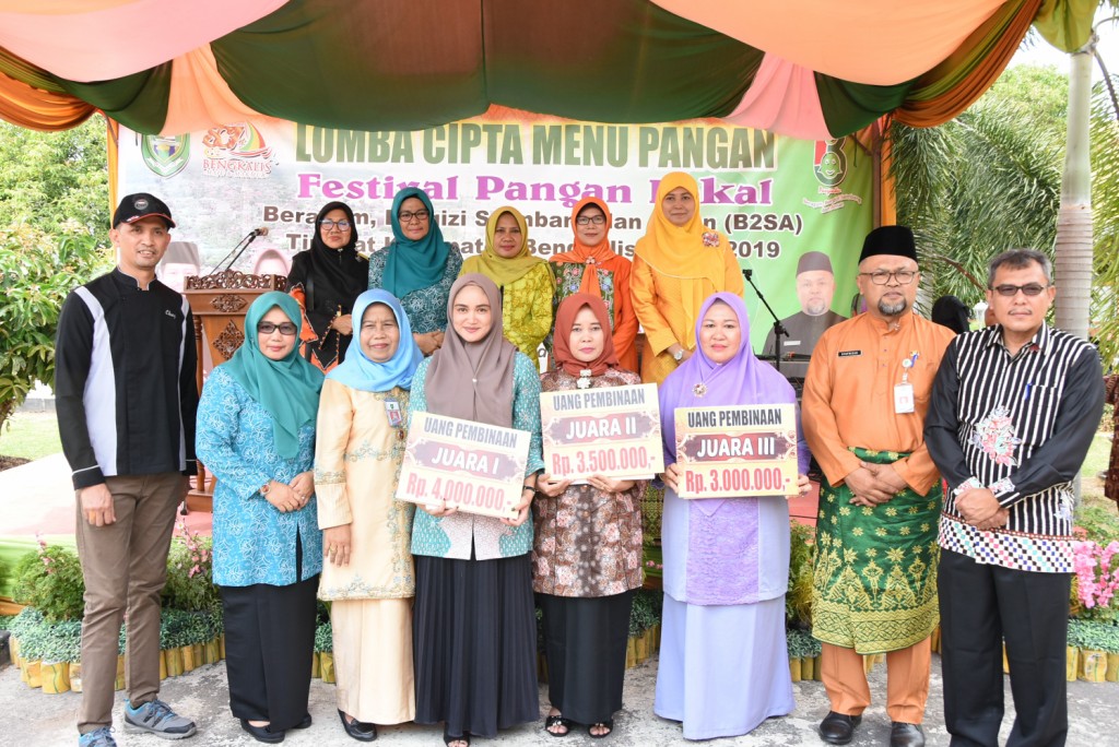 BENGKALIS. RIAUMADANI. COM - Bupati Bengkalis Amril Mukmunin diwakili Asisten I Tata Pemerintahan Hj. Umi Kalsum membuka secara resmi lomba cipta festival pangan lokal Beragam, Bergizi, Simbang dan Aman (B2SA) tingkat Kabupaten Bengkalis, Kamis 25 Juli 2019, bertempat di halaman Kantor Dinas Ketahananan Pangan Kabupaten Bengkalis Jalan Antara Bengkalis.