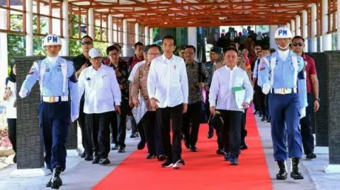 Presiden Jokowi usai mengunjungi kawasan wisata The Kaldera Toba Nomadic Escape, Kecamatan Ajibata, Kabupaten Toba Samosir, Sumatera Utara, seperti dilansir kompas.com Selasa (30/7/2019) siang