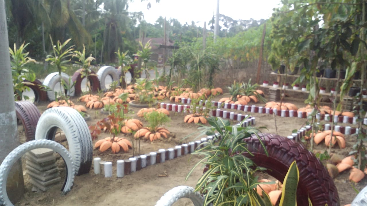 Ketua RT 01 Dusun ll, Muslihin yang juga kreator ban bekas menjelaskan, "progres ini masih 70%, dan saya turun tangan langsung untuk memimpin gotong royang di wilayah saya.