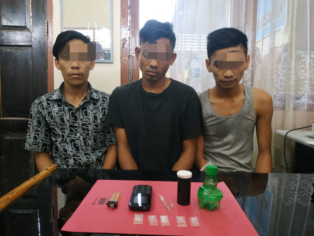 TAMBANG. RIAUMADANI. COM - Tiga orang pria yang diduga sebagai pengedar narkotika jenis shabu, diringkus Tim Opsnal Satresnarkoba Polres Kampar di Desa Gobah Kecamatan Tambang pada Senin sore (12/8/2019).