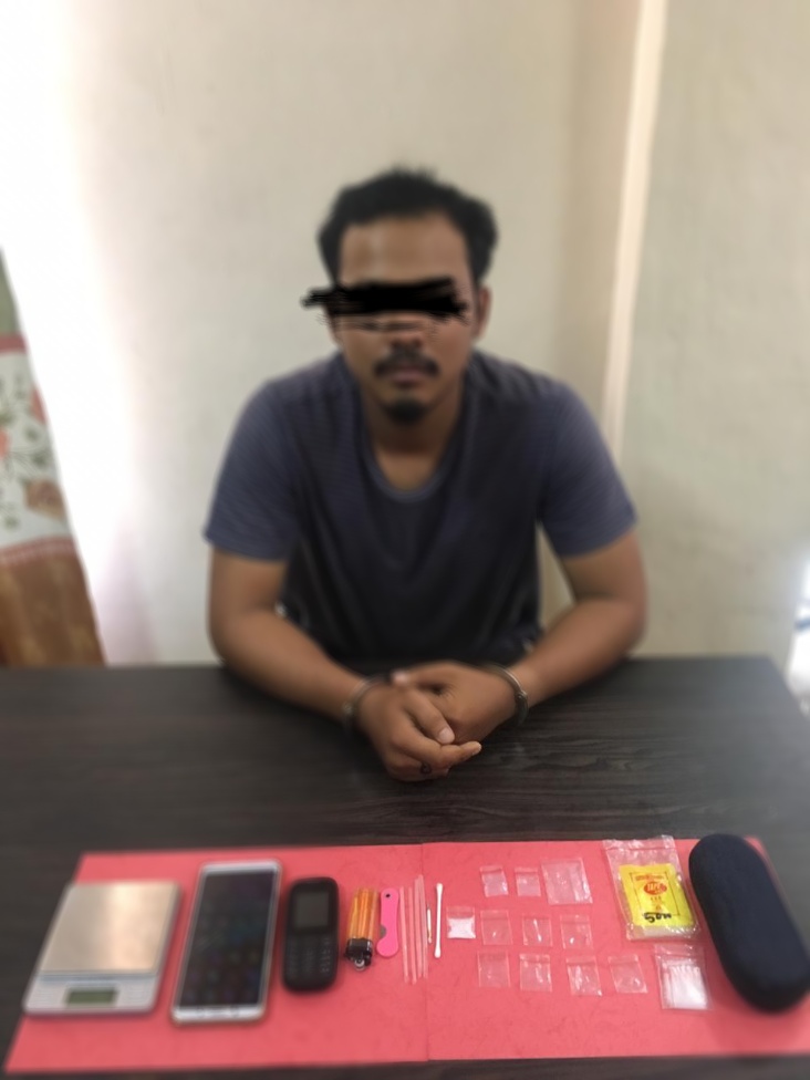 Petugas langsung melakukan penangkapan terhadap pelaku berinisal YG, (25) tahun, dengan didampingi Ketua RT setempat dilakukan penggeledahan badan, rumah dan tempat tertutup lainnya di TKP dan ditemukan sejumlah barang bukti berupa, 1 (satu) paket diduga narkotika jenis sabu dengan berat kotor keseluruhan ± 0,79 gram.