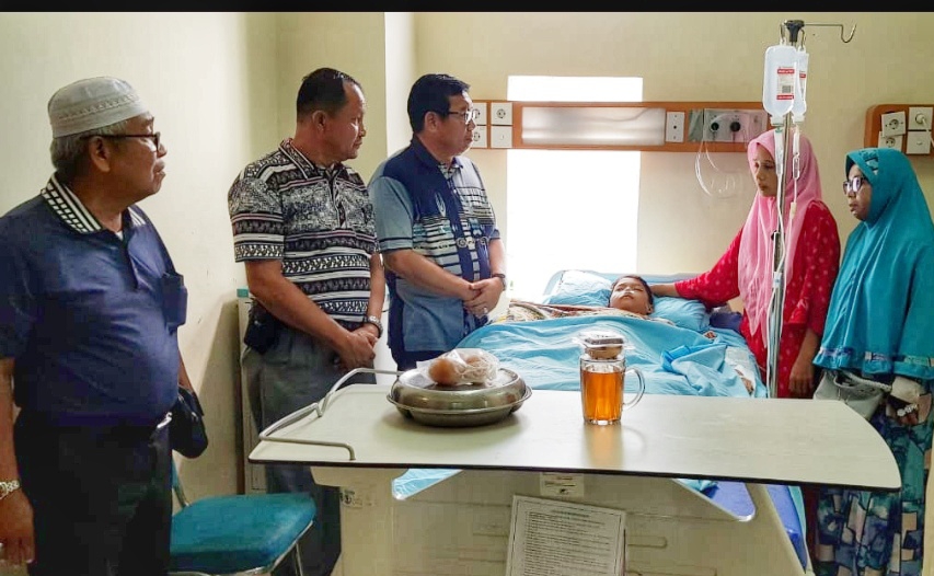 Sekda Meranti yang sering disapa Icut tiba di Rumah Sakit Arifin Ahmad Kota Pekanbaru  sekira pukul 10:00 wib pagi, langsung menuju Ruangan Dahlia kamar kelas tiga Lantai dasar, tempat dimana Safrul dirawat secara Langsung