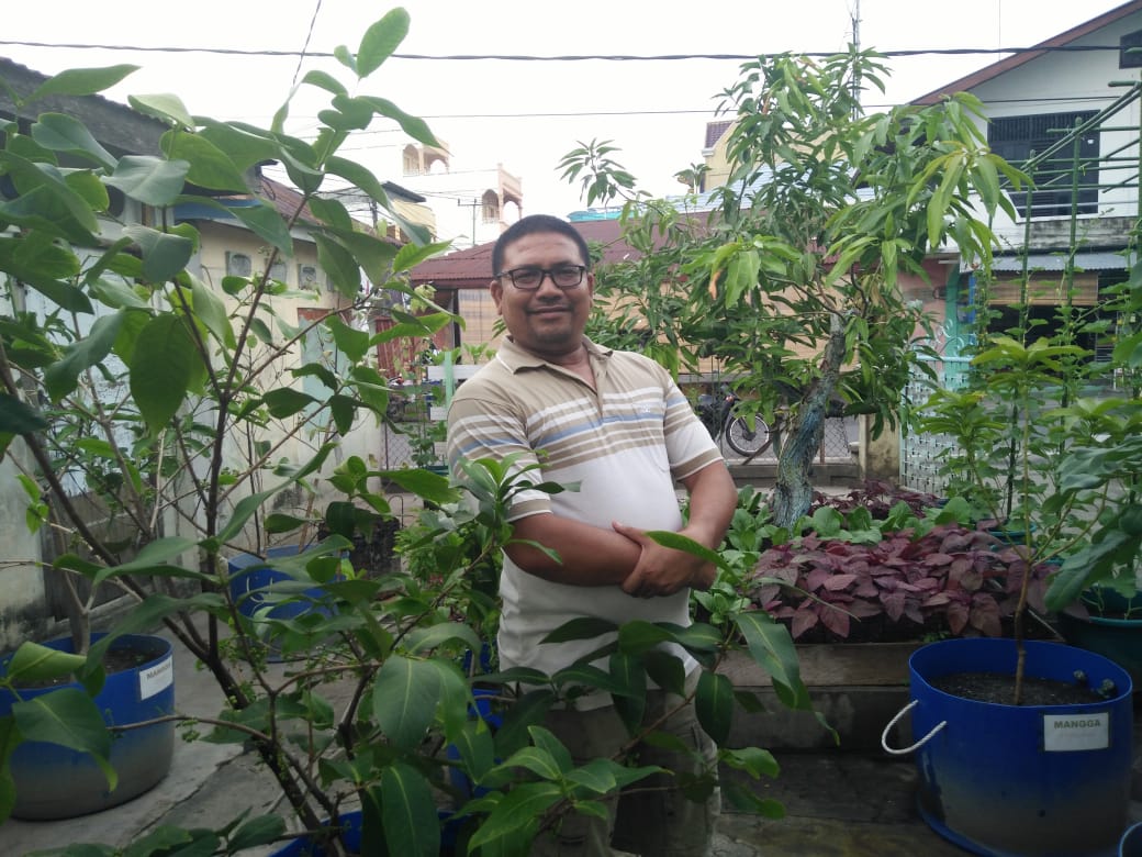 SELATPANJANG. RIAUMADANI. COM - Meski hanya menyewa rumah bersama teman-teman sesama Aparatur Sipil Negara (ASN) Pemkab Kepulauan Meranti, Jufri Jr, SE, tetap tekun, kreatif dan inovatif dengan menyulap halaman rumah sewanya menjadi kebun aneka buah dan sayuran.