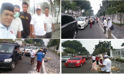 PEKABARU. RIAUMADANI. COM - Bencana kabut asap yang takkunjung reda semenjak 2 bulan ini sangat meresahkan masyarakat, sudah selayaknya hal ini menjadi bencana nasional karena setiap tahun berulang terjadi . Pengurus kecamatan Partai Gerindra se-kota Pekanbaru melakukan Aksi melawan asap dengan mendistribusikan masker kepada masyarakat pengguna jalan Sudirman tepatnya didepan kantor gubernur Riau, Selasa (17/09/2019)