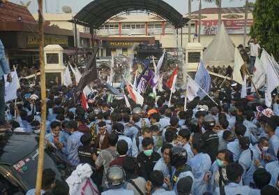 Karena tak menemui penjelasan pasti, massa merasa kecewa. Sempat terjadi kericuhan, dimana pihak kepolisian dan mahasiswa saling dorong mendorong. Mahasiswa berusaha menerobos blokade barisan pengamanan.