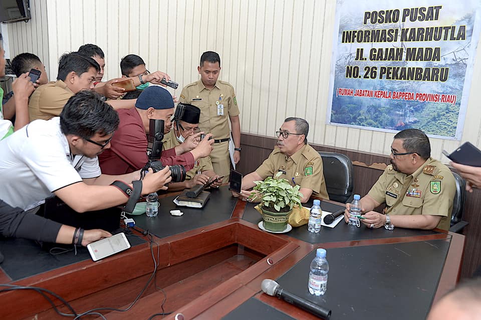 Pernyataan ini langsung disampaikan Syamsuar usai melakukan rapat terbuka di Kantor Media Center Satgas Karhutla di Jalan Gajah Mada bersama dengan stakeholder lainnya.
