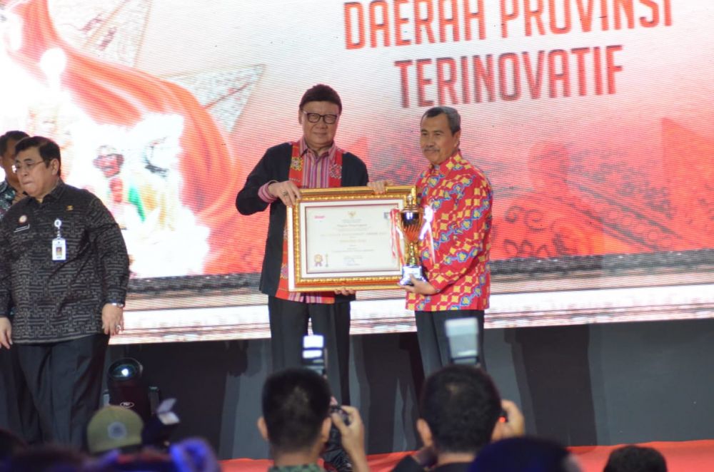 Penghargaan tersebut diserahkan langsung oleh Menteri Energi dan Sumber Daya Mineral (ESDM) Ignasius Jonan didampingi Wakil Menteri ESDM Arcandra Tahar kepada Kepala Dinas ESDM Provinsi Riau Indra Agus Lukman, Jumat (27/9/19) malam.