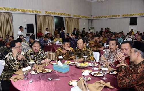 Bupati Bengkalis Amril Mukminin Menghadiri Malam Kenal Pamit Irjen Pol Drs. Widodo Eko Prihastopo, MM dan Irjen Pol Agung Setya Effendi, SH,S.I.K.,M.Si, di Balai Serindit Gubernuran, Kamis (4/10/19).