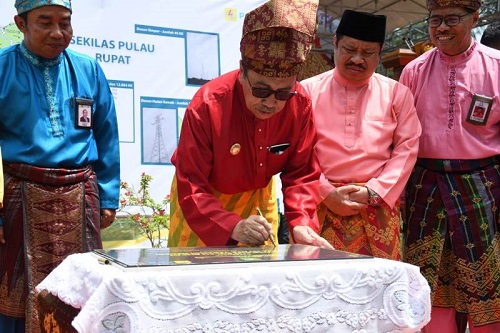 Peresmian tower 20 KV di pulau Rupat yang dapat menerangi 300 Kepala Keluarga (KK) di Desa Hutan Samak dan 45 KK di Dusun Simpur itu dilakukan di sela-sela Puncak Festival Mandi Safar 1441 H/2019 M yang dipusatkan di Pantai Tanjung Lapin, Desa Tanjung Punak, Kecamatan Rupat Utara, Rabu, 23 Oktober 2019.