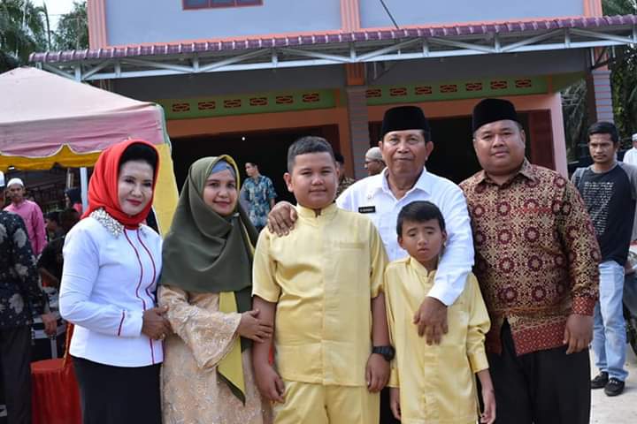 Bupati Rokan Hulu (Rohul) H. Sukiman dan Ketua TP PKK Rohul Hj Peni Herawati Sukiman menghadiri syukuran atas sukses dan terlaksananya proses pemilihan hingga pelantikan Kepala Desa Rambah Tengah hilir