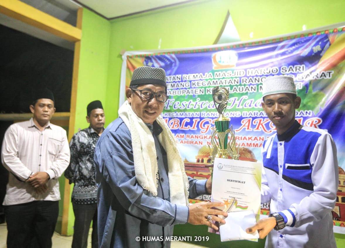 "Hadroh Kabupaten Kepuluan Meranti merupakan yang terbaik Se Provinsi Riau yang beberapa waktu lalu telah mendapatkan penghargaan dari Kabupaten Kepulauan Meranti".