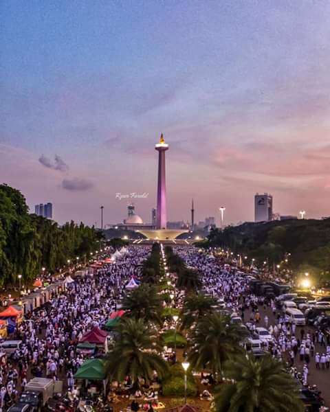JAKARTA. RIAUMADANI. COM - Jutaan Peserta Reuni 212 berkumpul disilang Monas Jakarta terlihat dari pantauan di lapangan. Diman" />