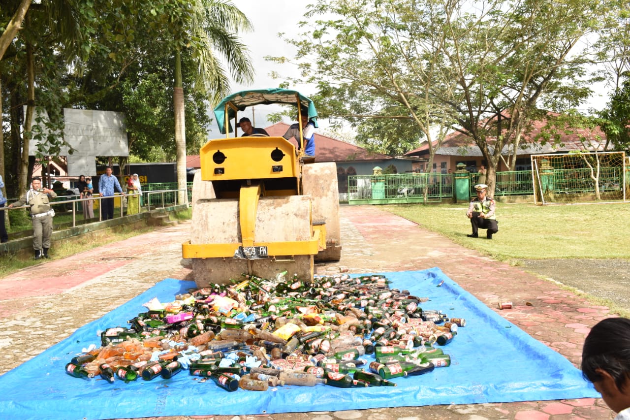 Polres Kampar Musnahkan 998 Botol Miras dan Ratusan Liter Tuak Hasil Operasi KRYD