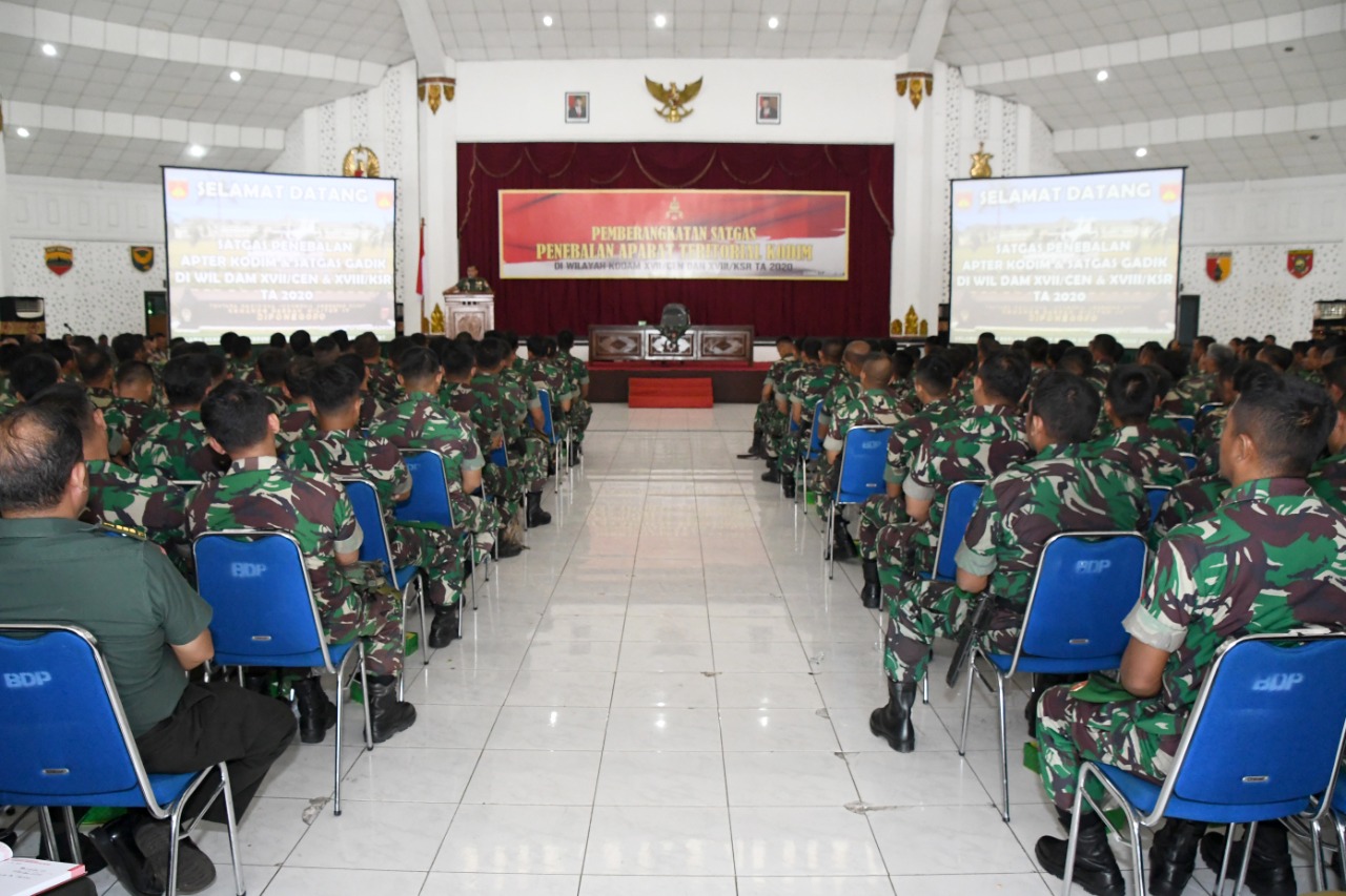 "Tugas merupakan suatu amanah dan kehormatan yang diberikan oleh Pimpinan TNI dan Negara kepada para prajurit Kodam IV/Diponegoro terpilih." Demikian penyampaian Pangdam IV/Diponegoro Mayjen TNI Mochamad Effendi, S.E., M.M. melalui amanatnya yang dibacakan Kasdam IV/Diponegoro Brigjen TNI Teguh Muji Angkasa, S.E., M.M. dalam acara Pemberangkatan Satgas Aparat Teritorial dan Satgas Gadik/Gapendik Kodam IV/Diponegoro di Balai Diponegoro, Jum at (17/01/2020).