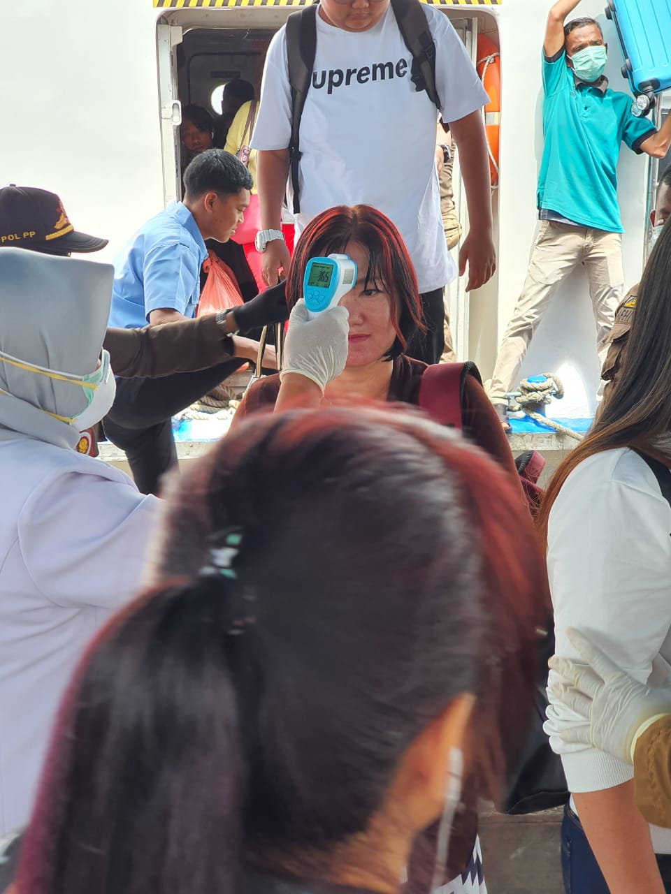 Petugas KSOP Selatpanjang, Suharto mengatakan pihaknya bersama Kantor Kesehatan Pelabuhan melakukan pemeriksaan ketat terhadap penumpang di pelabuhan menggunakan thermal scanner.