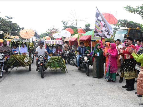 Bupati Kampar Lepas Rombongan 70 Becak Hias Antar Pengantin ke Sidang Isbat