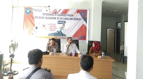 PELALAWAN. RIAUMADANI. COM - Camat Bunut Srinursari, SE hadiri talk show program P4GN (Pencegahan Pemberantasan Penyalagunaan dan Peredaran Gelap Narkoba) yang dilaksanakan oleh BNN Kabupaten Pelalawan pada Kamis (6/02/2020) bertempat  di kantor Camat Bunut.
