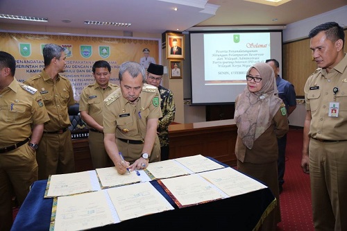Adapun penandatangan ini dihadiri Gubernur Riau (Gubri) Syamsuar dan masing-masing Kepala Daerah diantaranya Kabupaten Kampar, Kabupaten Rohil, Kabupaten Rohul dan Kabupaten Bengkalis.