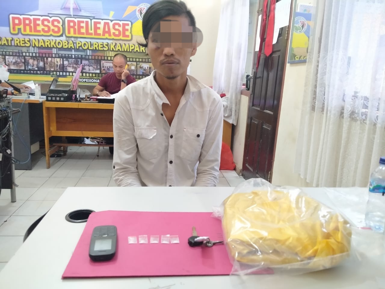 BANGKINANG. RIAUMADANI. COM  - Tim Opsnal Satres Narkoba Polres Kampar kembali menangkap seorang pengedar narkotika jenis shabu, pada Jumat siang (6/3/2020) di Jalan Agussalim Kecamatan Bangkinang Kota.