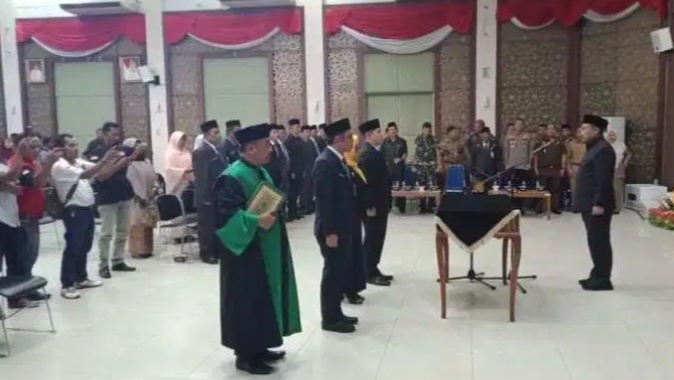 Bupati Kampar Catur Sugeng Sutanto melantik dan mengambil sumpah jabatan, penjabat pimpinan tinggi pratama di lingkungan Pemerintah Kabupaten Kampar. Senin (09/03/2020)