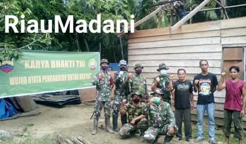 BatuGajah, Inhu, RIAUMADANI.com- Melalui Karya Bhakti TNI sebagai wujud nyata pengabdian dengan rakyat dan sebagai bentuk kemanunggalan dengan rakyat, Koramil 04 Pasir Penyu Kodim 0302 Inhu melaksanakan kegiatan bedah rumah milik ibu Marini (46), buruh cuci, janda beranak dua, warga Desa Batu Gajah, RT/ RW: 3/9 yang berdasarkan pemantauan dan pendataan sudah tidak layak huni.