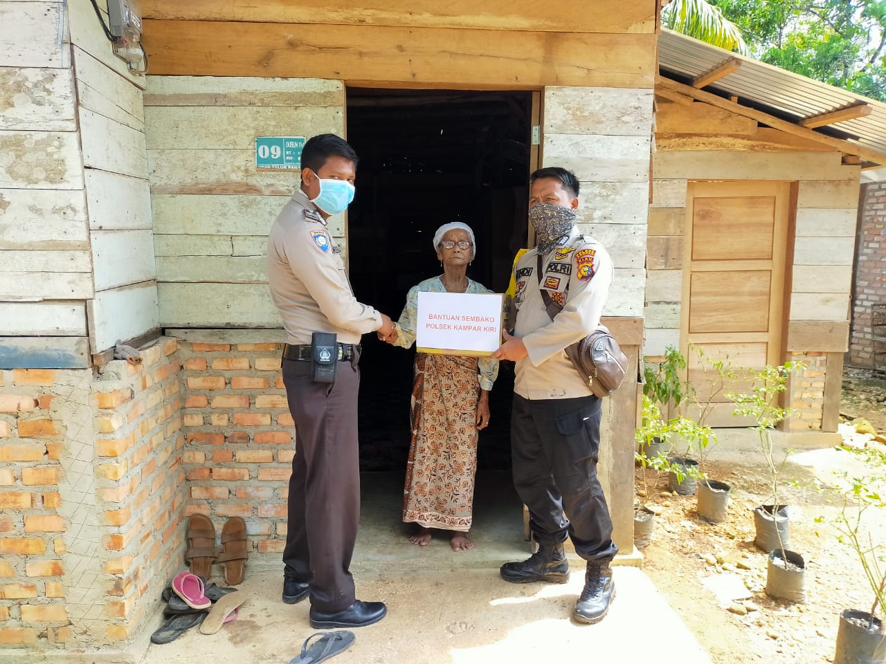 Masing-masing keluarga ini diberikan bantuan paket sembako berisi Beras 4 kg, Minyak Goreng 4 liter, Gula 4 Kg, Teh 4 Kotak dan Mie Instant 20 bungkus, atas bantuan ini mereka sangat bersyukur dan mengucapkan terimakasih kepada jajaran Polsek Kampar Kiri yang telah peduli dengan mereka.