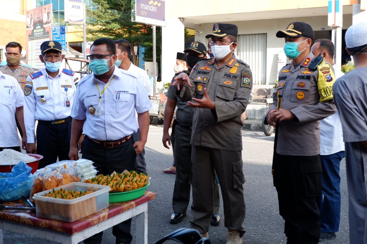 BANGKINANG. RIAUMADANI. COM - Forkopimda Kabupaten Kampar Tinjau Aktivitas Pasar Ramadhan di Kawasan Pasar Atas Kota Bangkinang dalam rangka pencegahan penyebaran Covid-19 pada Rabu sore (29/4/2020).