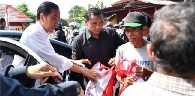 Presiden Jokowi bagikan sembako bagi warga di Kecamatan Tambora, Jakarta Barat. Aksi Jokowi ini dilakukan sebelum adanya pandemi corona.