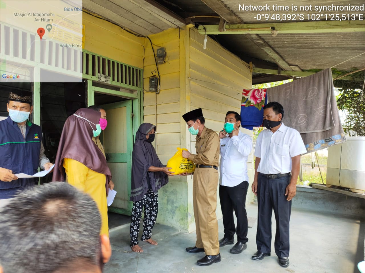 PELALAWAN. RIAUMADANI. COM - Wakil Bupati Pelalawan Drs. H. Zardewan didampingi oleh Ketua DPRD Kabupaten Pelalawan Adi Sukemi, Sekretaris Dinas Sosial Kabupaten Pelalawan Sri Noralita, Camat Ukui Amri Juharza, Kades Air Hitam Tansi Sitorus, dan Kades Lubuk Kembang Bunga Rusi Chairus Selamat menyerahkan secara simbolis bantuan sembako kepada masyarakat Desa Lubuk Kembang Bunga dan Desa Air Hitam di Kecamatan Ukui yang terkena musibah banjir. Penyerahan bantuan ini dilaksanakan pada Selasa, 5 Mei 2020.
