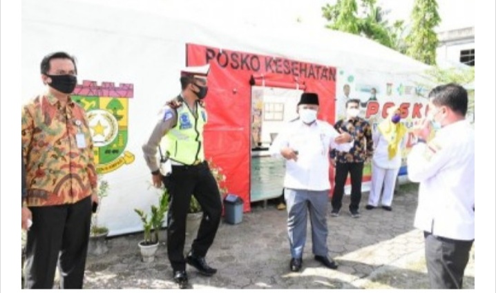 Sehari menjelang penerapan PSBB, Kamis (14/5/2020), Bupati Kampar yang diwakili Sekretaris Daerah Kabupaten Kampar H Yusri meninjau beberapa titik check point yang ada selama PSBB berlangsung di Kabupaten Kampar.