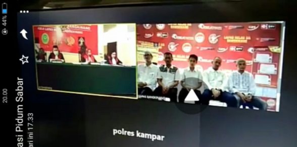 Sidang di Pengadilan Negeri Bangkinang melalui video confrence dengan Kejari Kampar dan Lapas kelas IIA Bangkinang.Rabu (27/05/2020)