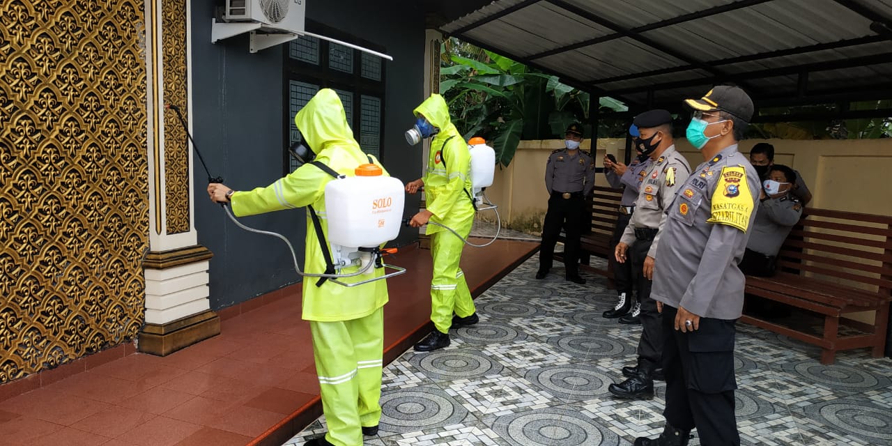 Jelang Hari Bhayangkara ke-74, Polres Kampar Lakukan Goro dan Desinfeksi di Tempat Ibadah