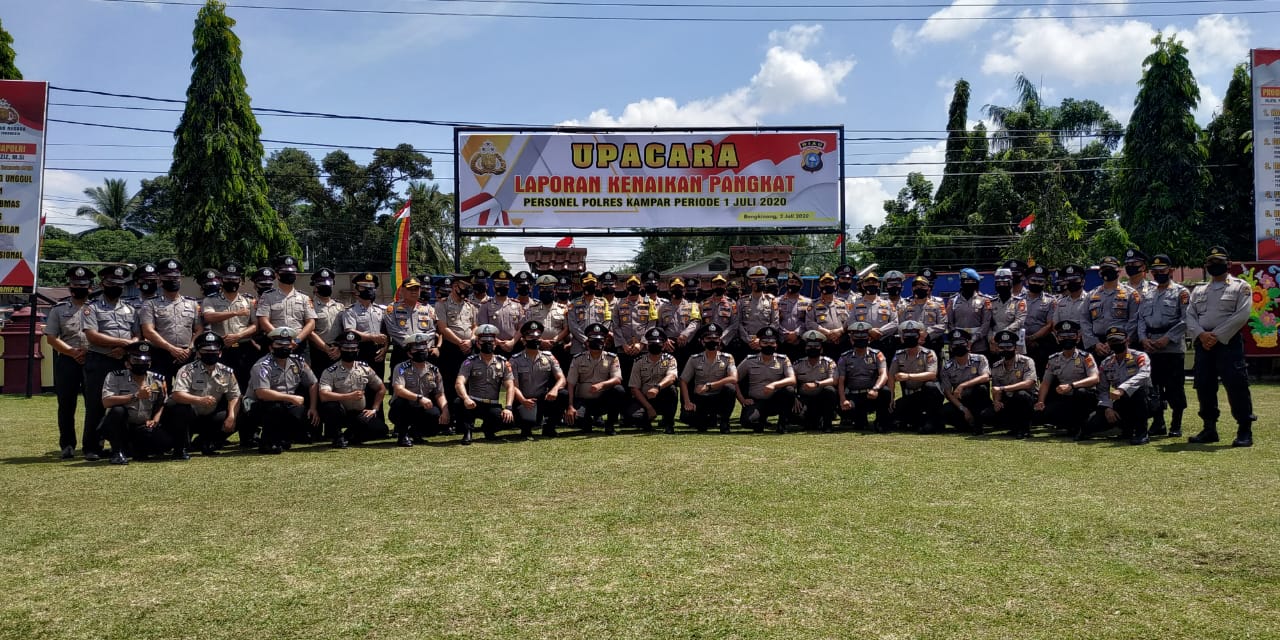 Upacara kenaikan pangkat personel Polres Kampar ini dilaksanakan pada hari Kamis pagi (2/7/2020) di Lapangan Upacara Mapolres Kampar, yang dipimpin langsung oleh Kapolres Kampar AKBP Mohammad Kholid SIK.