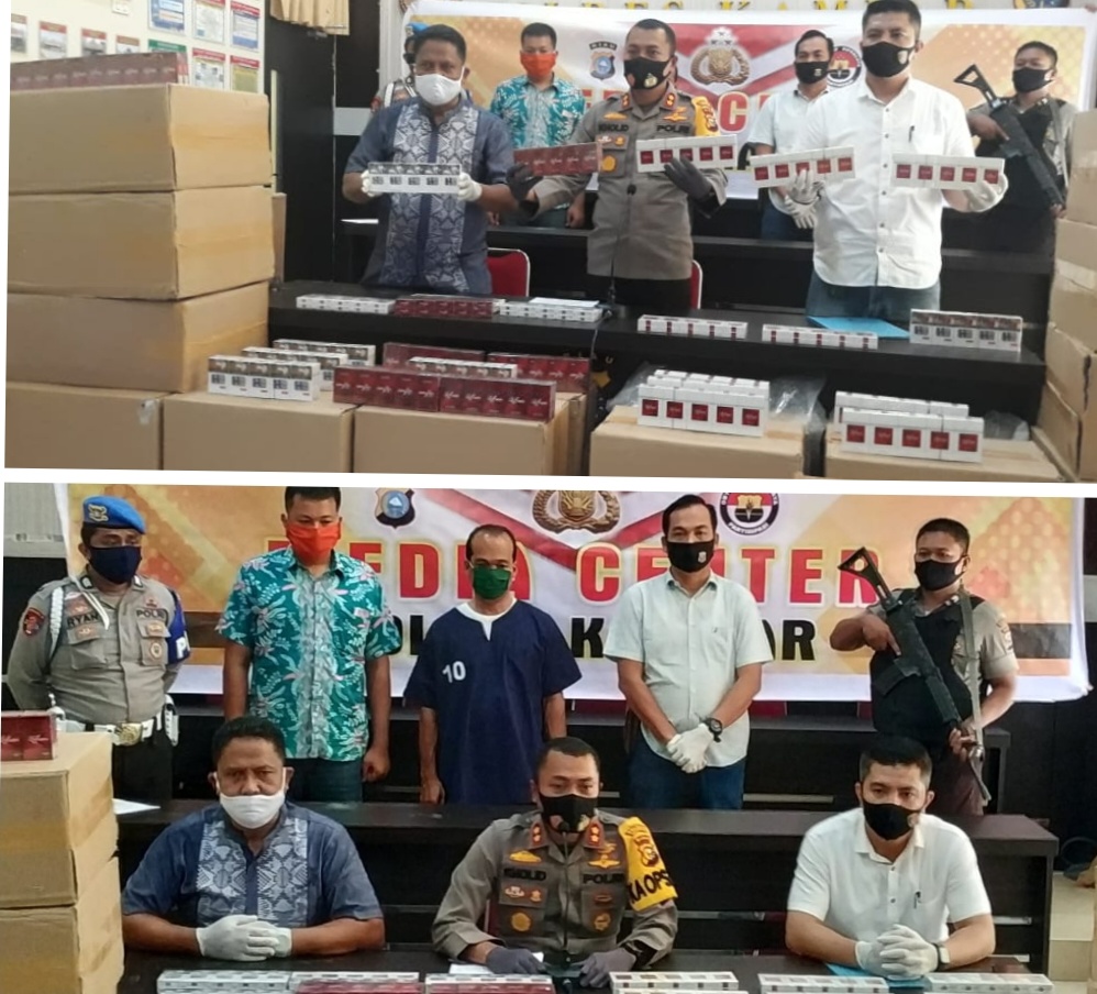 Kapolres Kampar AKBP Mohammad Kholid SIK, didampingi Kasat Reskrim AKP Fajri SH, SIK dan Kasubbag Humas Iptu Deni Yusra,  melaksanakan Ekspos atas Kasus Kepemilikan, Pengedaran dan Penjualan Rokok illegal Tanpa Pita Cukai yang dit