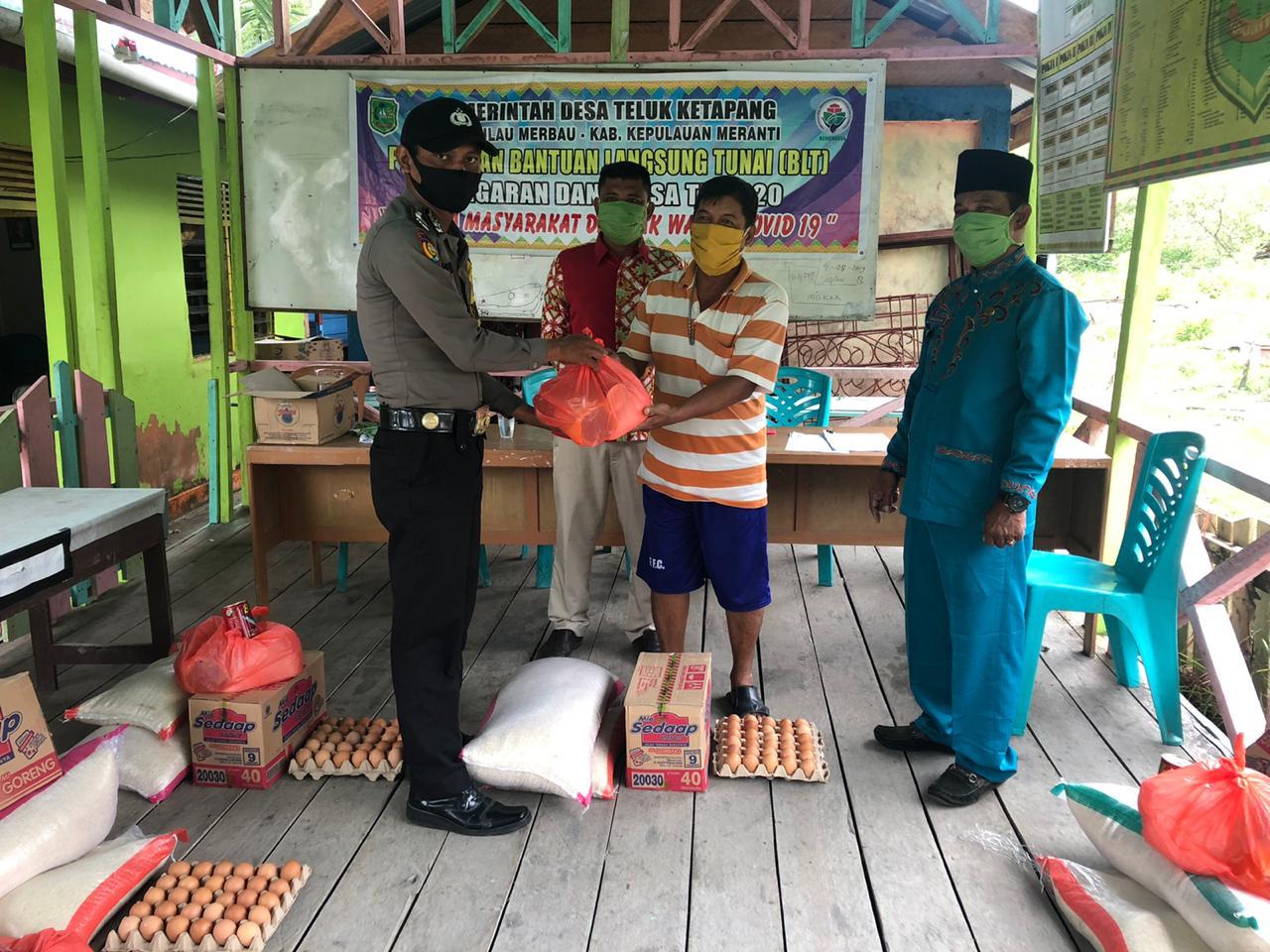 SELATPANJANG. RIAUMADANI. COM - Polsek Tebingtinggi Barat ikut melakukan pendistribusian Bansos Sembako tahap II dari Pemkab Kepulauan Meranti ke Seluruh Desa se-Kecamatan Pulau Merbau, Selasa (4/8/2020).